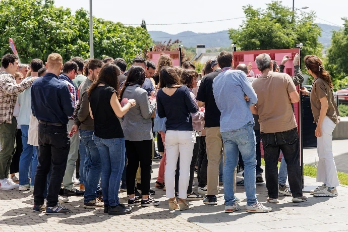 Per celebrar-ho, vam instal·lar uns fotomatons perquè tothom pogués fer-se fotografies, tant individuals com amb companys. Aquestes imatges es convertien en adhesius que van formar un gran mural col·laboratiu. Cada fotografia representava una peça essencial de l'equip i, totes juntes al mural, donaven forma a un missatge carregat de significat: una imatge de cohesió i orgull de pertànyer a aquesta gran empresa.